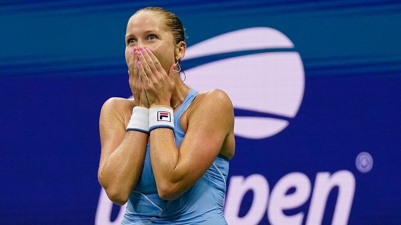 Shelby Rogers of the USA after a winner to Ashleigh Barty of Australia on day six of the 2021 US. 4 2021 in New York. The worlds top-ranked tennis player has fallen.