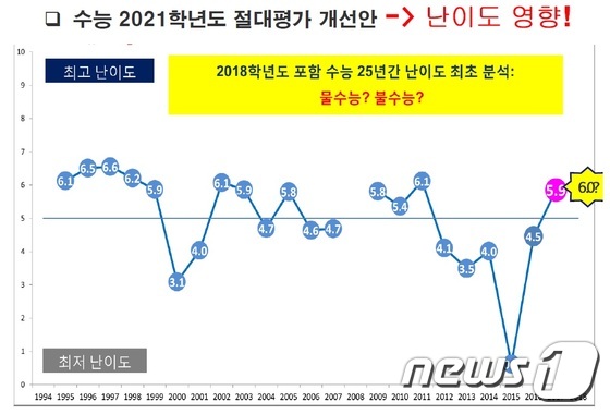 1996년 수능은 현재까지도 역대 수능 가운데 가장 난이도가 높았던 시험으로 꼽힌다. 작년에 이어 두 번째로 치러진 2019 대수능 영어영역은 작년 수능90점 이상 1003 보다는 어렵고 9월 모의평가90점 이상 792와 비슷한 난이도로 출제된. 속보2021 수능 수학 난이도 공통과목 어렵고 선택과목 비슷해사진제주도교육청공동취재단 출제 경향 및 특징.